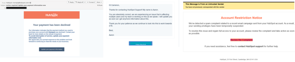 Plusieurs équipes de recherche en cybersécurité ont documenté une campagne de phishing ciblée visant les utilisateurs de la plateforme HubSpot.