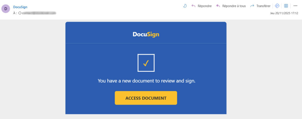 2. Le faux document DocuSign : la pression du « business as usual »