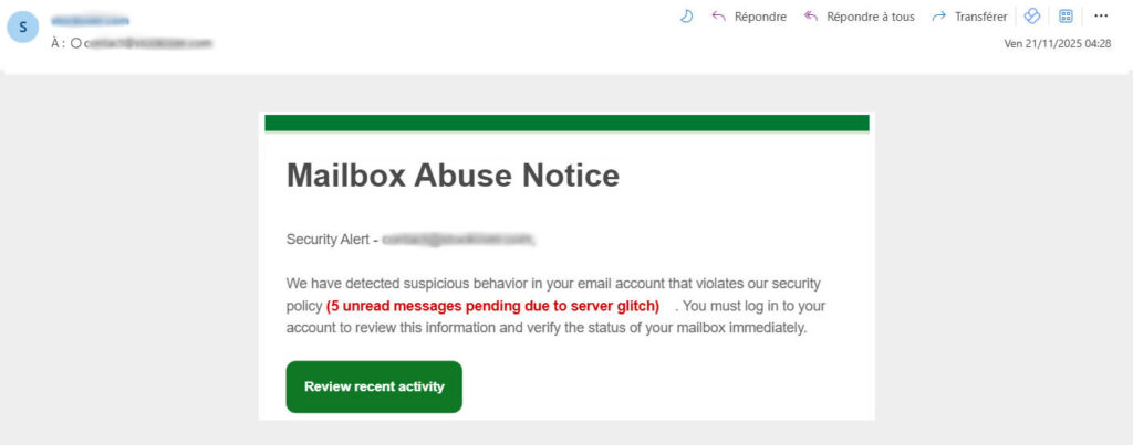 3. L’alerte abus mailbox : la panique liée à la messagerie