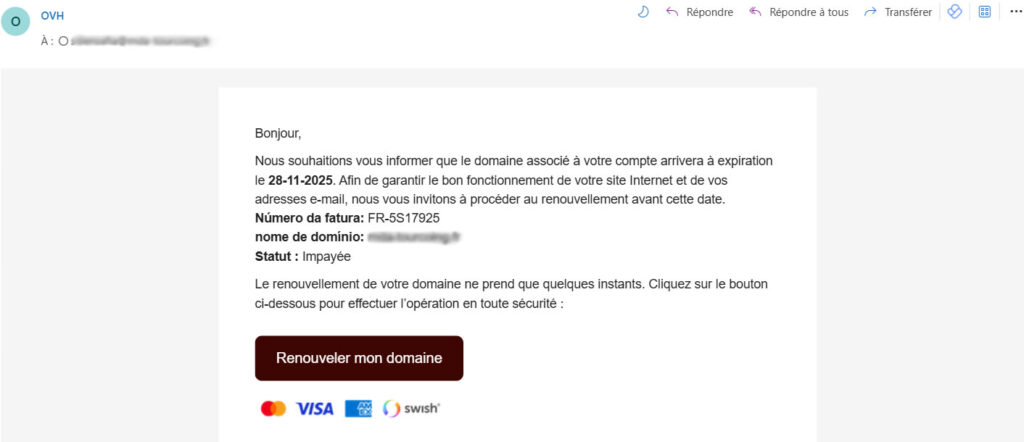 4. Le faux renouvellement de domaine OVH : l’exploitation de la peur de l’interruption de service