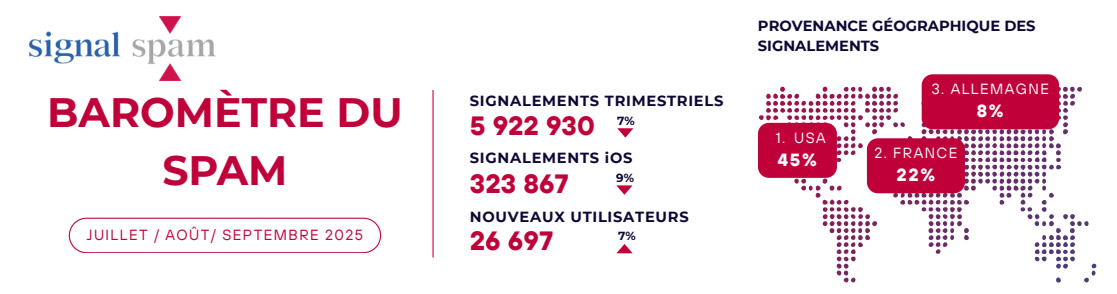 Baromètre Signal Spam – 3ᵉ trimestre 2025 : la France en 2ᵉ position mondiale des signalements